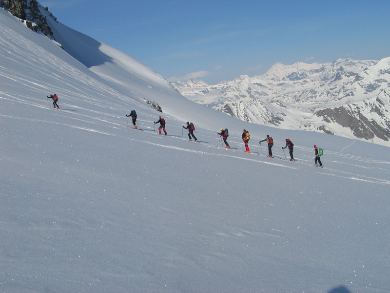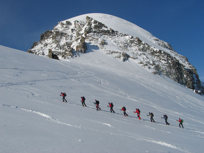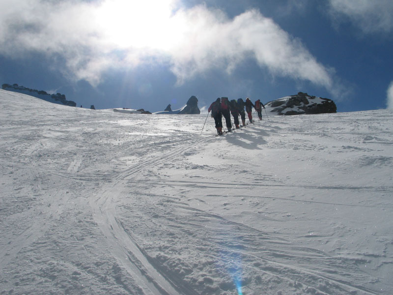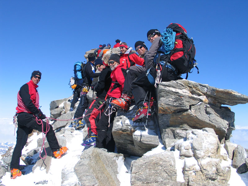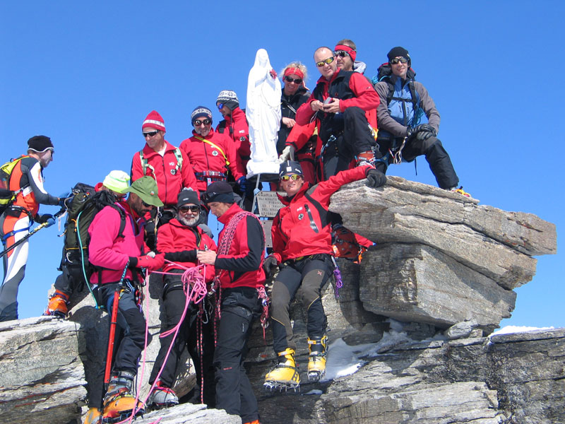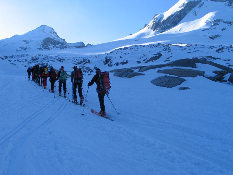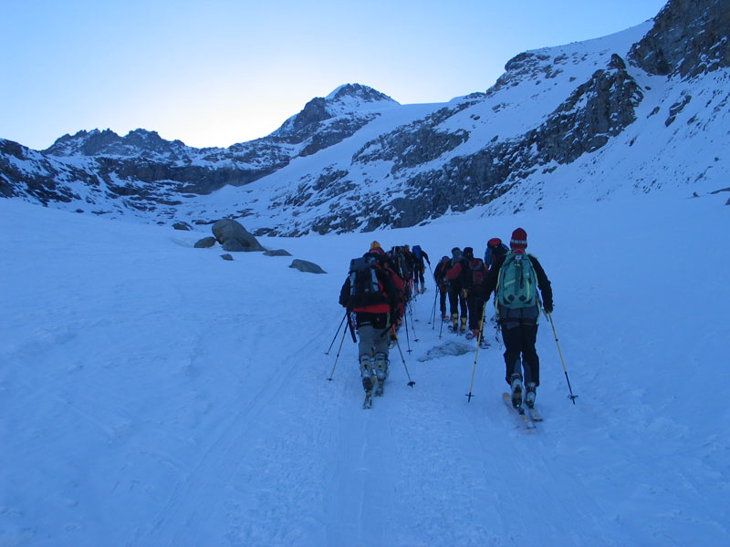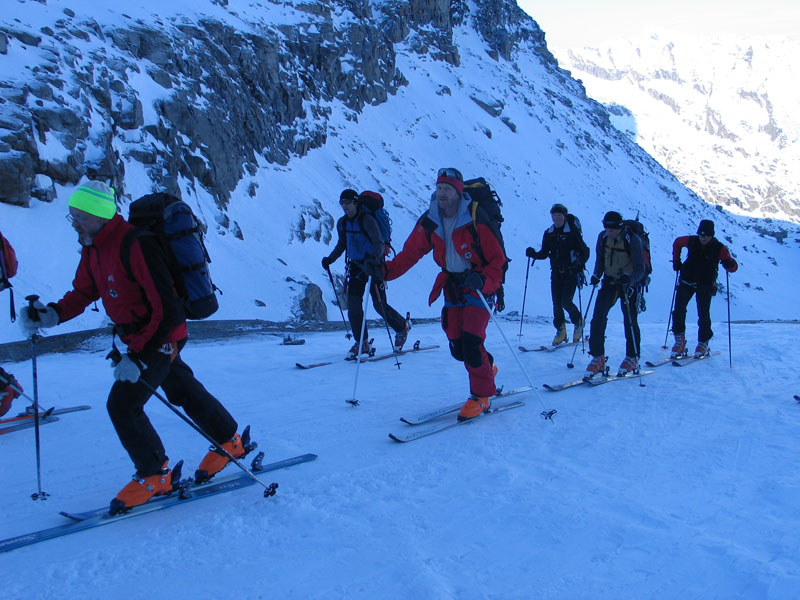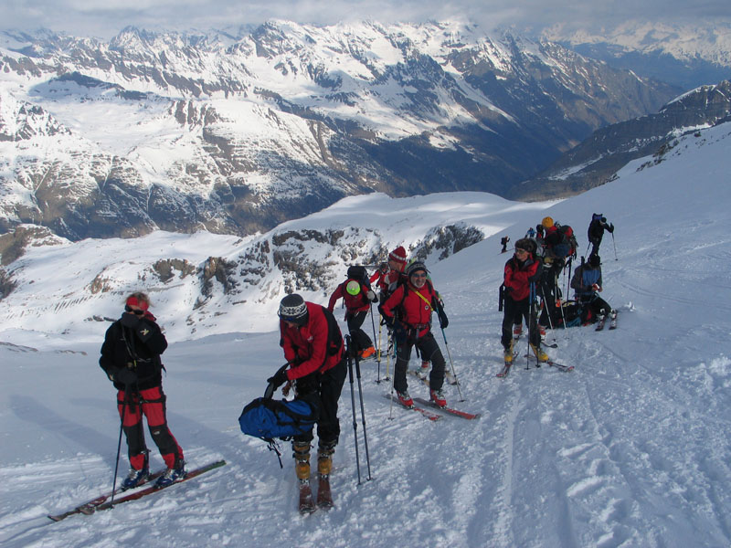Als Abschluss der Wintersaison 2005/2006 unternahm die Bergrettung Axamseine Gemeinschaftstour in die Westalpen bei der 15 BergretterInnen teilnahmen und ein unvergessliches verlängertes Wochenende, bei herrlichem Wetterund traumhaften Schneeverhältnissen erlebten. Wir starteten am Samstag Nachmittag in Pont im innersten Val Savarancheund stiegen, die ersten 500Hm die Schier tragend, vorbei an Steinböcken zum Rifugio Vittorio Emanuele (2732m), unserem Stützpunkt für die nächsten beiden Tage, auf. Am Sonntag erreichte die gesamte Gruppe nach ca. 4 stündigem Aufstieg den Gipfel des Gran Paradiso (4061m) und genoss anschließend die grandiose Abfahrt zurück zur Hütte. Die Konditionsbolzen die sich noch nicht ausgelastet fühlten erstiegen nachmittags noch die La Tresenta (3609m) bevor am Abend der erfolgreiche Tag gefeiert wurde. Für den Schlusstag hatten wir uns als Ziel den formschönen Ciarforon (3640m) ausgesucht, den wir in abwechslungsreicher Kletterei über den No-Grat erstiegen. Mit einem italienischen Essen in Pont endete ein herrliches Bergwochenende.