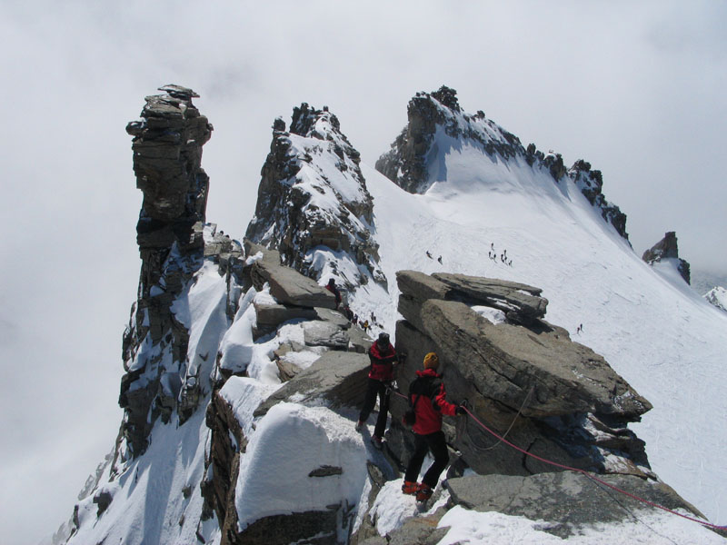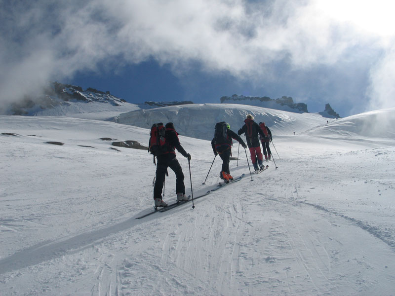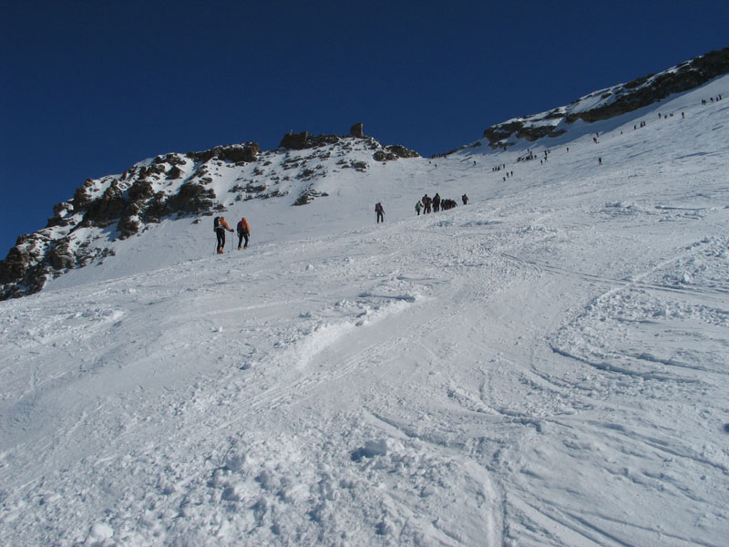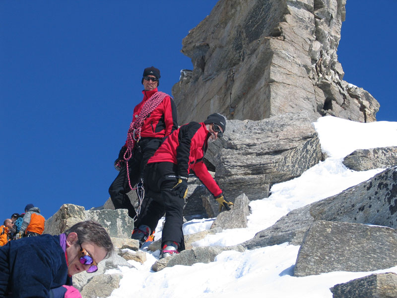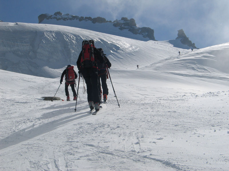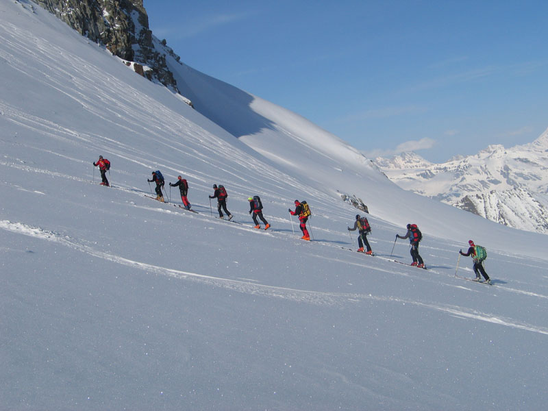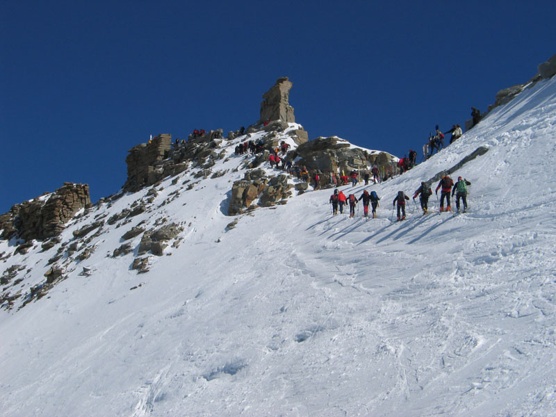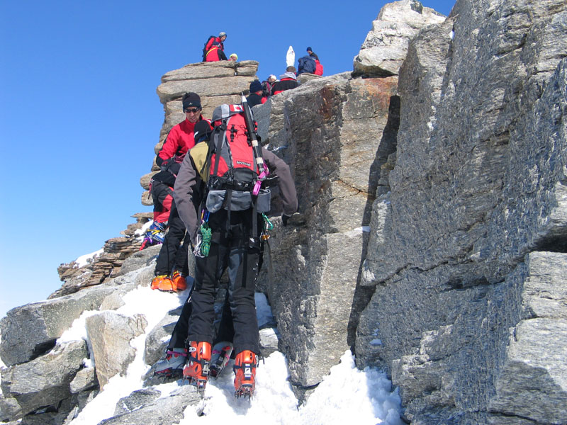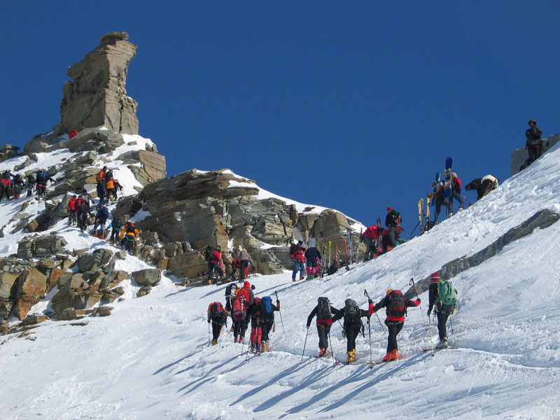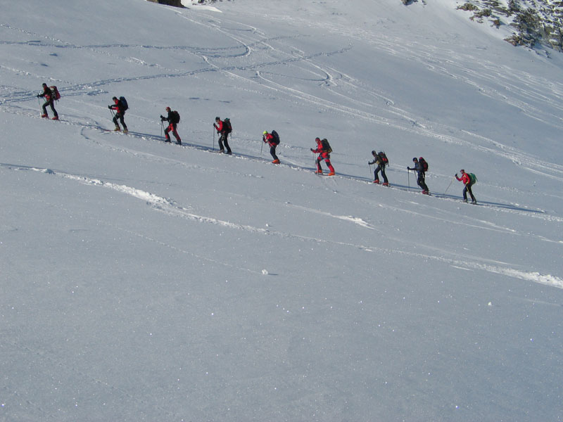Als Abschluss der Wintersaison 2005/2006 unternahm die Bergrettung Axamseine Gemeinschaftstour in die Westalpen bei der 15 BergretterInnen teilnahmen und ein unvergessliches verlängertes Wochenende, bei herrlichem Wetterund traumhaften Schneeverhältnissen erlebten. Wir starteten am Samstag Nachmittag in Pont im innersten Val Savarancheund stiegen, die ersten 500Hm die Schier tragend, vorbei an Steinböcken zum Rifugio Vittorio Emanuele (2732m), unserem Stützpunkt für die nächsten beiden Tage, auf. Am Sonntag erreichte die gesamte Gruppe nach ca. 4 stündigem Aufstieg den Gipfel des Gran Paradiso (4061m) und genoss anschließend die grandiose Abfahrt zurück zur Hütte. Die Konditionsbolzen die sich noch nicht ausgelastet fühlten erstiegen nachmittags noch die La Tresenta (3609m) bevor am Abend der erfolgreiche Tag gefeiert wurde. Für den Schlusstag hatten wir uns als Ziel den formschönen Ciarforon (3640m) ausgesucht, den wir in abwechslungsreicher Kletterei über den No-Grat erstiegen. Mit einem italienischen Essen in Pont endete ein herrliches Bergwochenende.