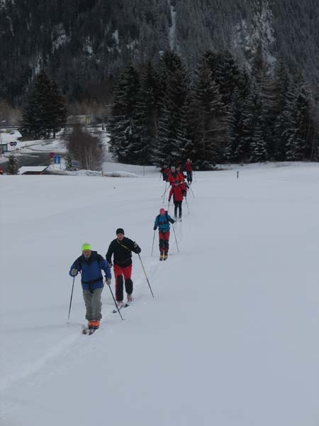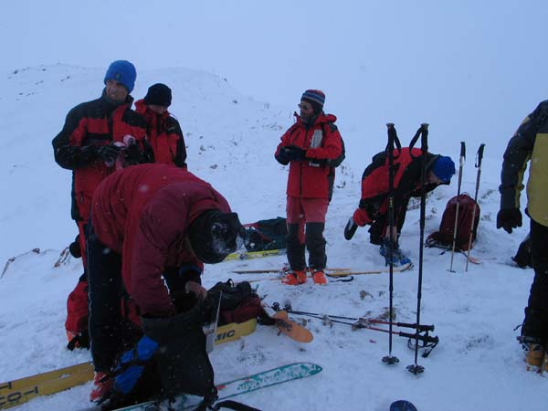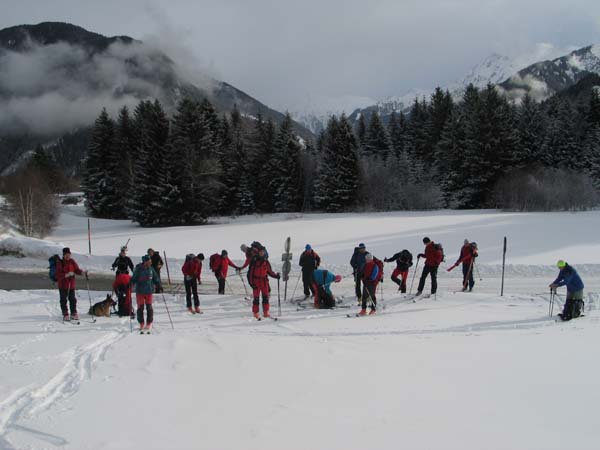 Obwohl uns das Wetter nicht so wohlgesonnen war, wie wir es normalerweise gewöhnt sind, nahm trotzdem die stolze Zahl von 17 Bergrettungsmänner und einem Gast an der ersten Gemeinschaftstour in diesem Jahr teil. Aufgrund der schlechten Wetterverhältnisse im Oberland beschlossen wir das Tourenziel ins Wipptal auf das 2231m hohe Nößlachjoch zu verlegen und zumindest anfangs wurde diese Entscheidung durch einigermaßen gutes Wetter belohnt. Es folgte eine wirklich gute Abfahrt durch den lichten Wald hinunter zur Nößlach-Hütte, wo wir unsere verbrauchten Energiespeicher wieder auffüllten ehe die Gemeinschaftstour mit der verbleibenden Abfahrt ihr gemütliches Ende fand.