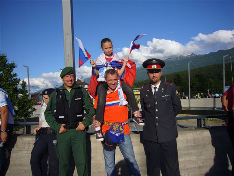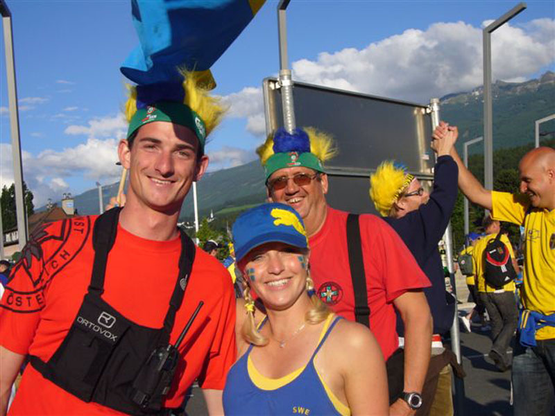 Da das Rote Kreuz mit seinen Bergetechniken hier an seine Grenzen stößt kommt die Bergrettung ins Spiel. Die Bergrettung Axams unterstützte die Ortsstelle Innsbruck an allen drei Spieltagen mit jeweils einem Tragenteam. Beim Spiel Schweden-Russland entstanden folgende Impressionen von der unglaublichen Stimmung, welche von den unzähligen Fans ausging.