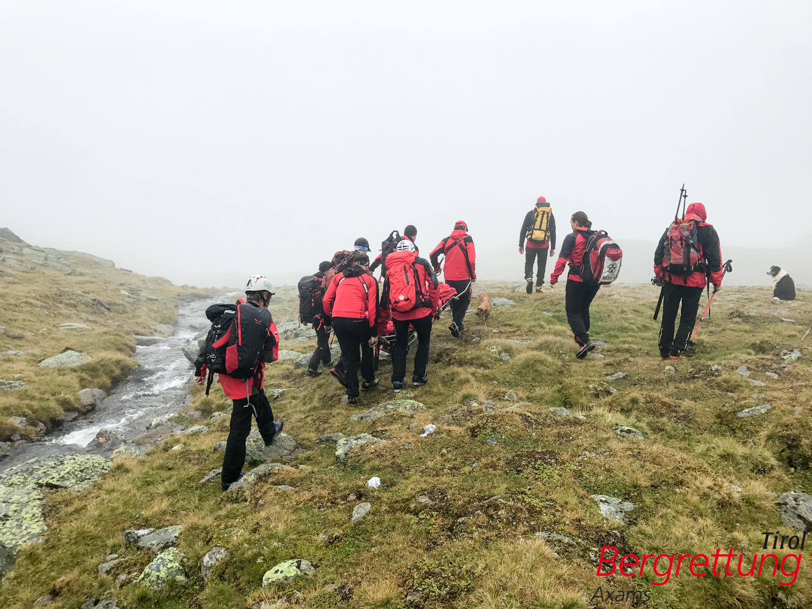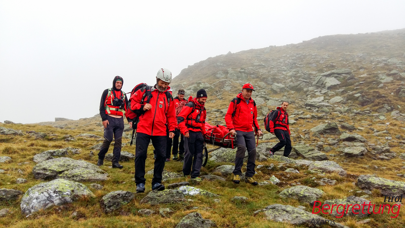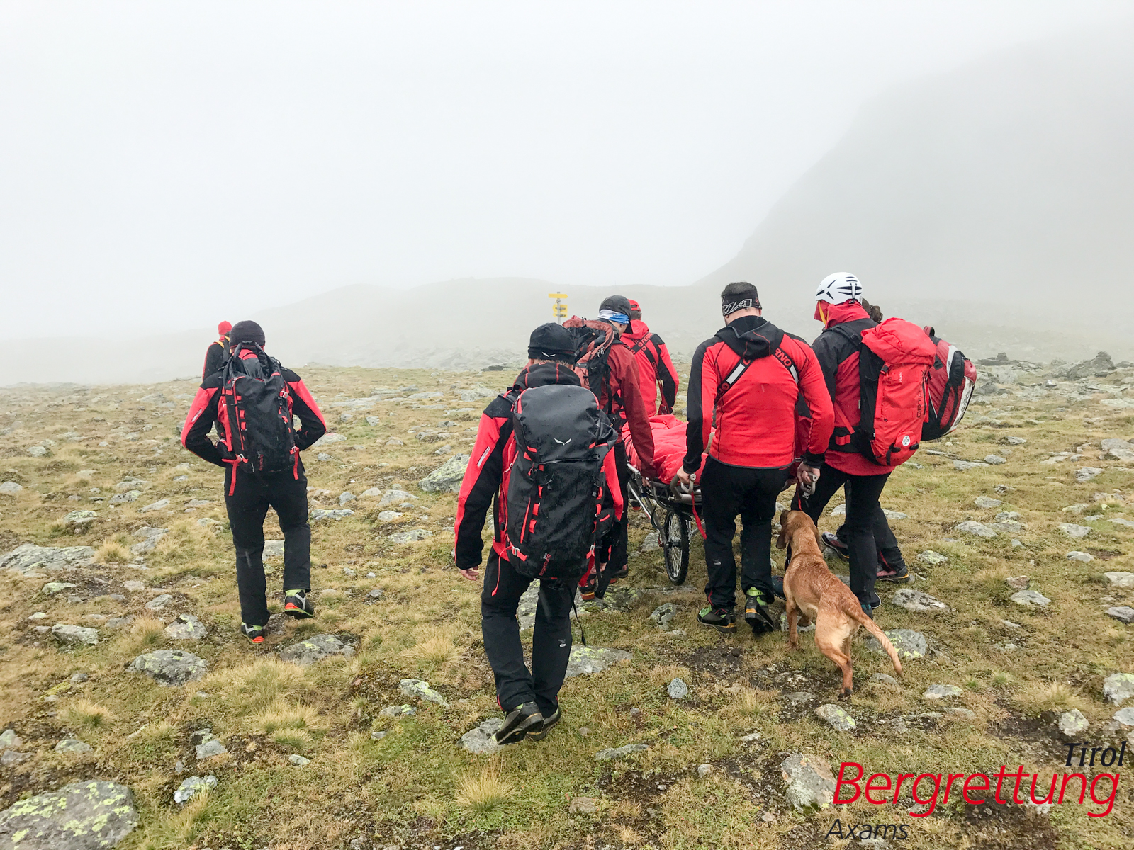 Eine rasche Bergung durch den Notarzthubschrauber war auf Grund des schlechten Wetters nicht möglich. An der Unfallstelle herrschte schon den ganzen Tag Dauerregen und zeitweise sogar leichter Schneefall. Zudem war die Sicht im Gipfelbereich durch tiefhängende Wolken stark eingeschränkt. Die erste Mannschaft fuhr mit dem Einsatzfahrzeug bis zur Potsdamer Hütte. Von dort sind noch ca. 450hm zu Fuß bis zum Verletzten zu bewältigen.