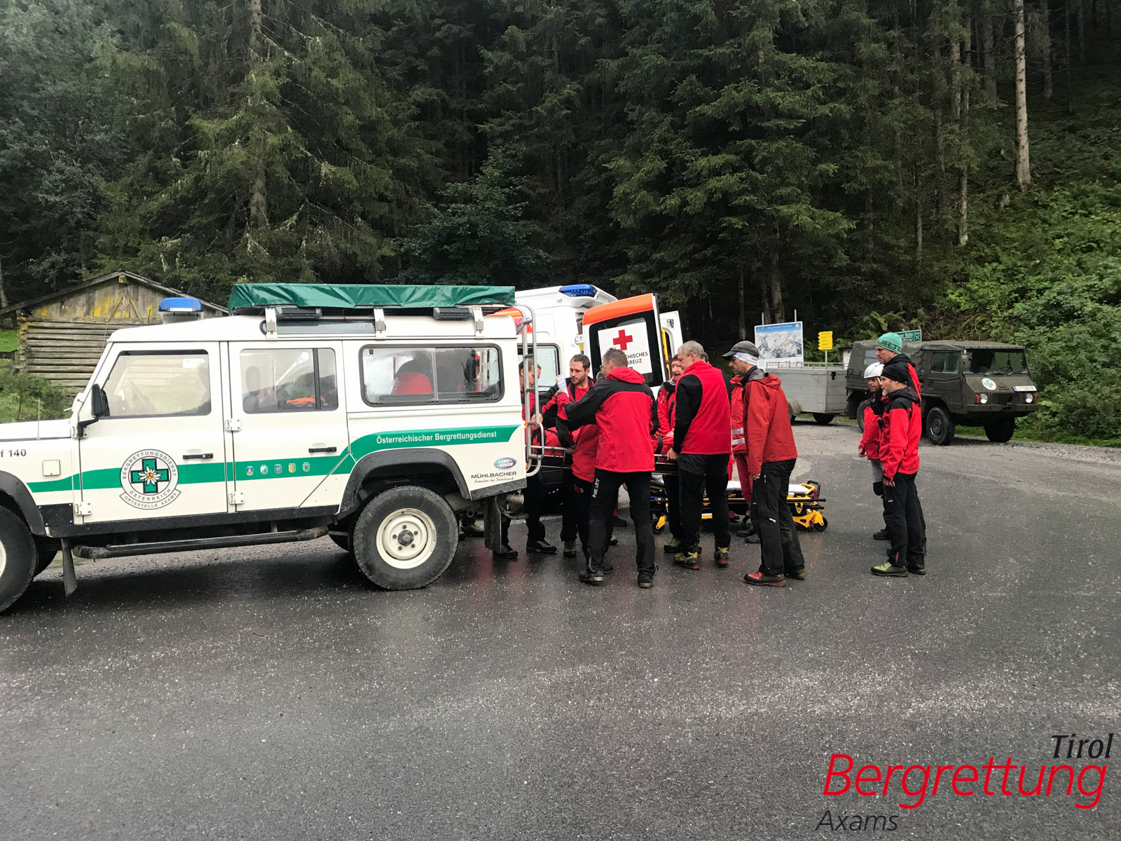 Am 1.9.2017 wurde die OS Axams über die Leitstelle Tirol zu einem Bergnotfall auf den Widdersberg im Fotschertal alarmiert. Die Koordinaten wurden vom Verunfallten diesmal über die Notfall-App der Bergrettung Tirol an die Leitstelle gemeldet, somit war die Position des Verunfallten genau bekannt. Die restlichen Fakten zum Unfallhergang und Verletzungsmuster wurden durch den Einsatzleiter per Telefon abgeklärt. Später konnte erhoben werden, dass sich der Mann bei einem Sturz einen komplizierten Beinbruch zugezogen hatte.