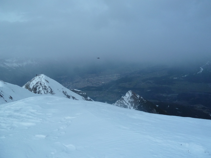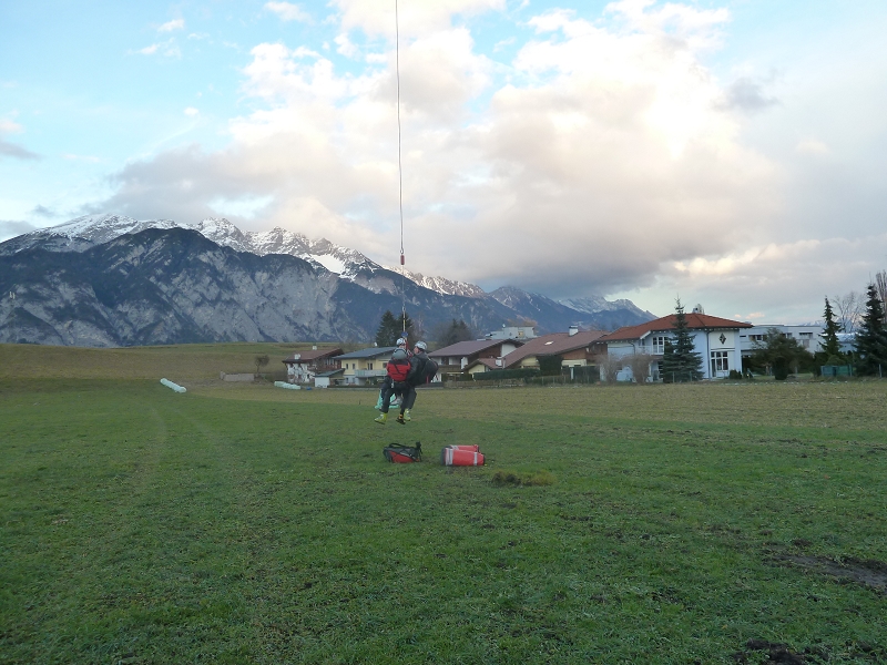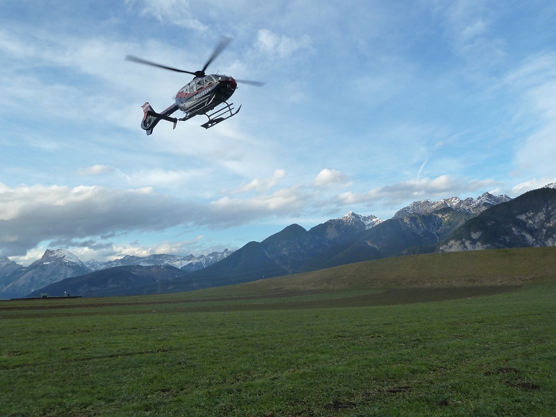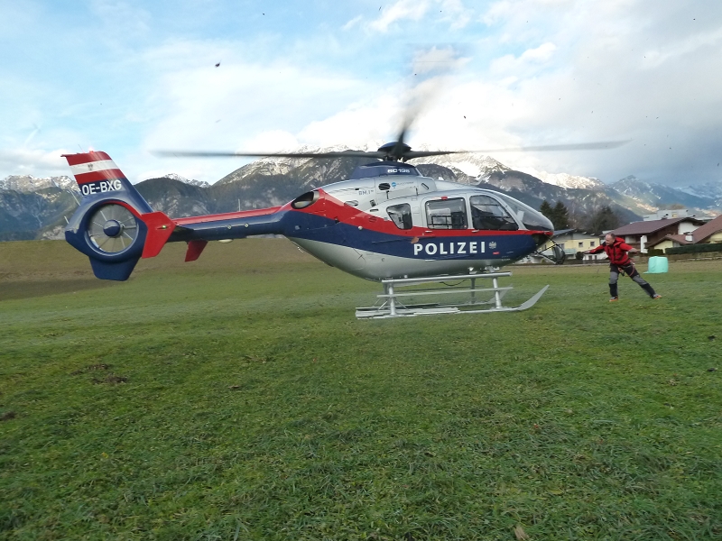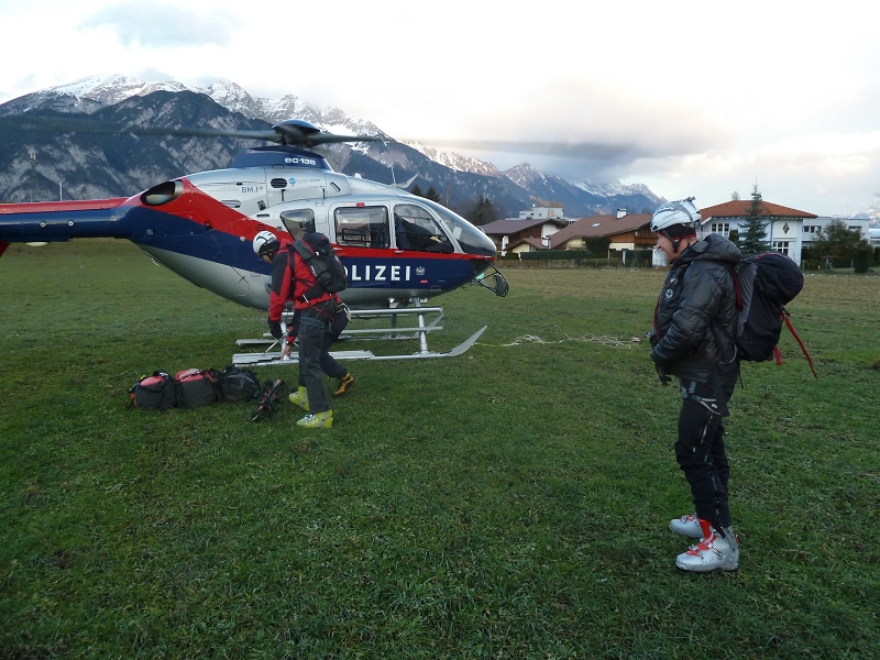 Da eine Taubergung auf Grund des herrschende Föhnsturms nicht möglich war, wurde gemeinsam mit dem Piloten des Polizeihubschraubers „Libelle“ beschlossen, eine Bergemannschaft am Tau von Axams aus auf den Gipfel der Nockspitze zu fliegen, um dann den verstiegenen Bergsteiger von oben mittels zwei 300 m langen Dyneemaseilen aus seiner gefährlichen Lage zu befreien.