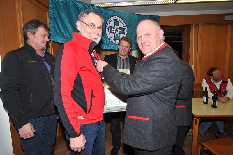 Heinz Gatscher eroberte den Titel „fleißigster Bergretter 2013“ und wurde dafür von den Mitgliedern der Ortsstelle lautstark gefeiert. Das erste Mal in der Geschichte der Ortsstelle fehlte Heinz bei keiner einzigen Schulung/Tour und glänzte so mit 100% Anwesenheit.