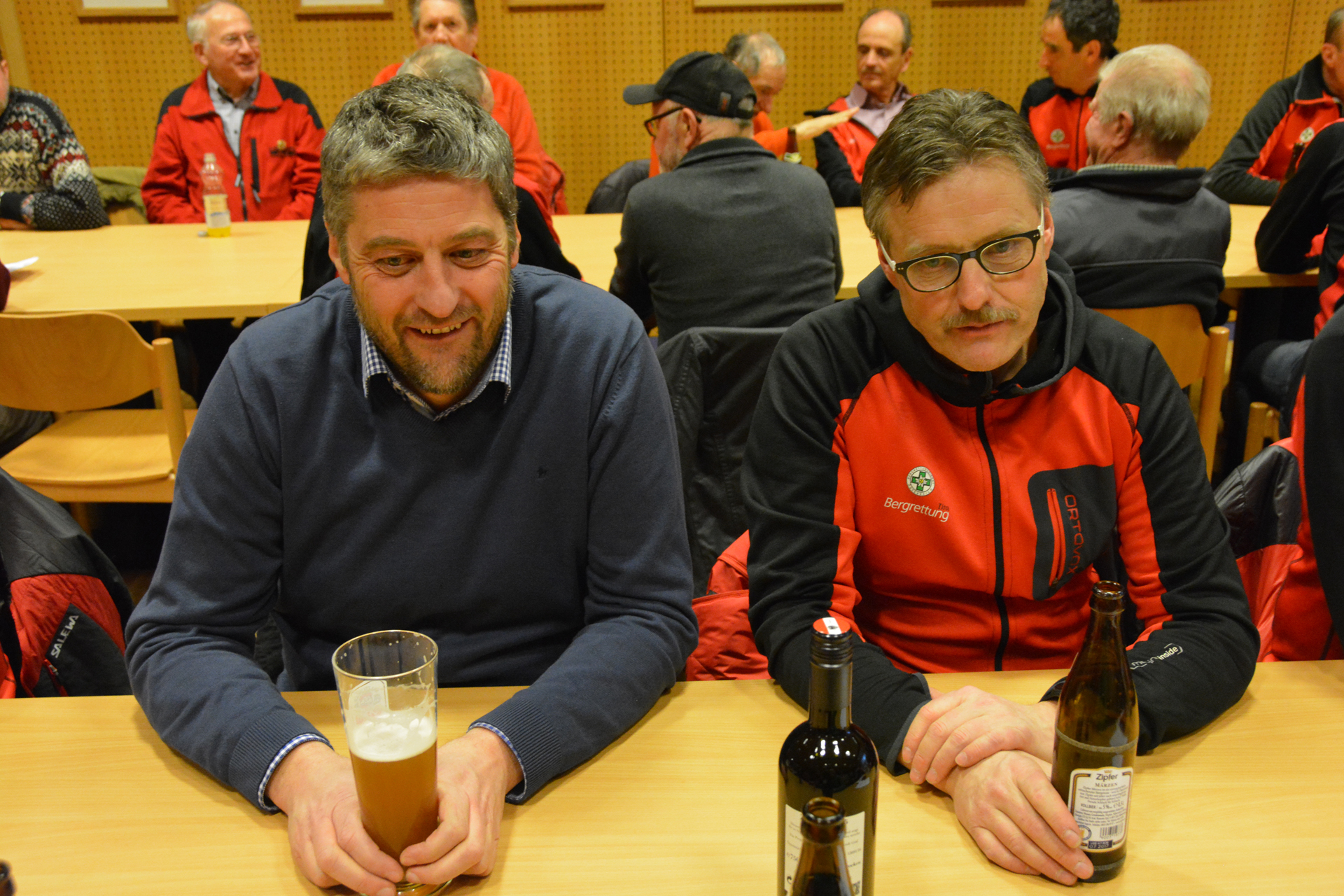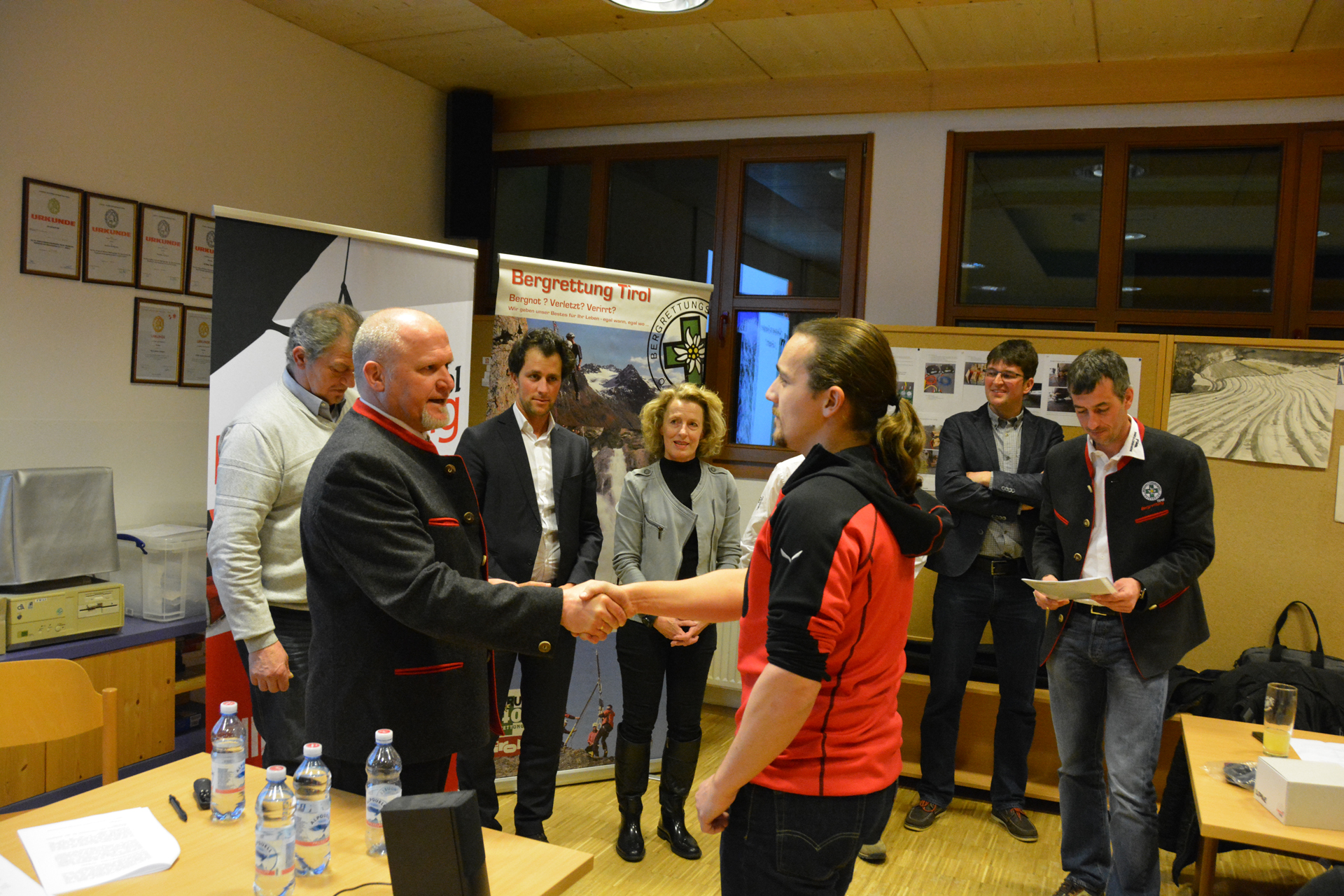 Nach Abschluss der Grundausbildung wurde Clemens Forster als neuer Bergretter aufgenommen. Erwin und Clemens konnten auch die Gratulationen der Ehrengäste entgegen nehmen.