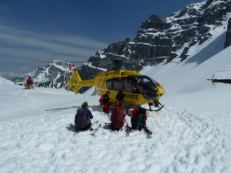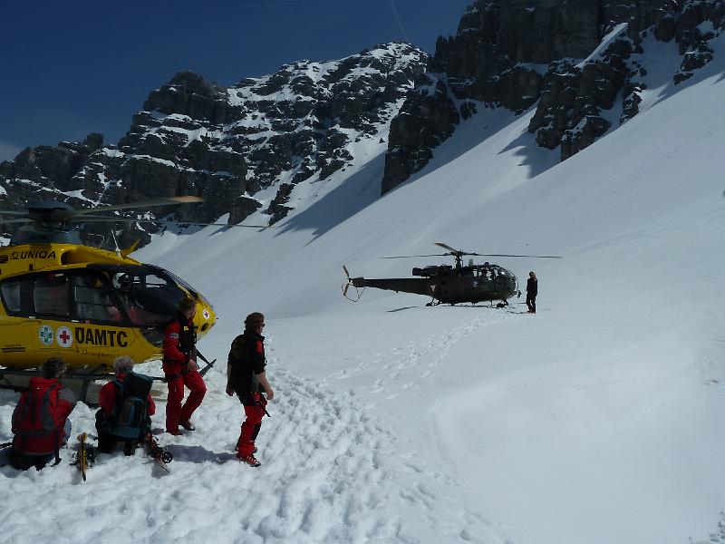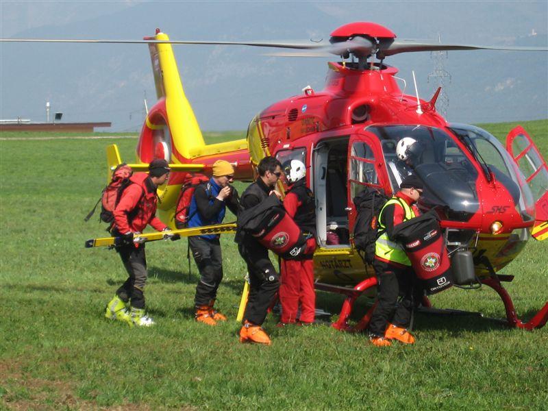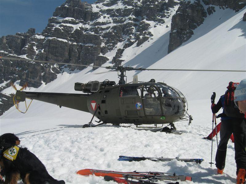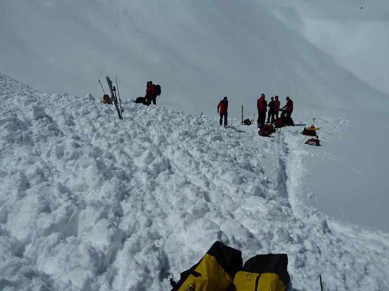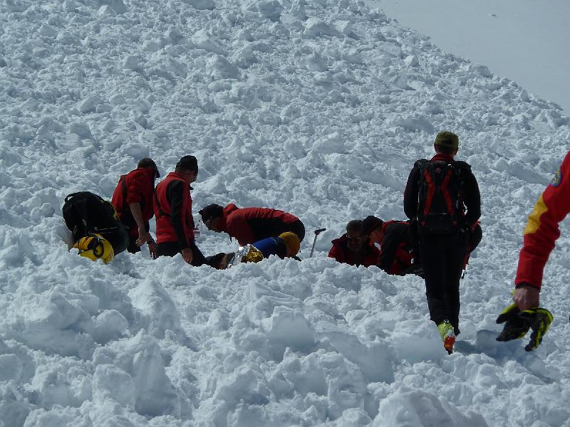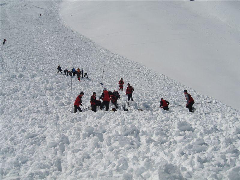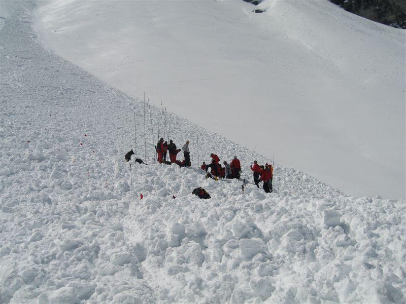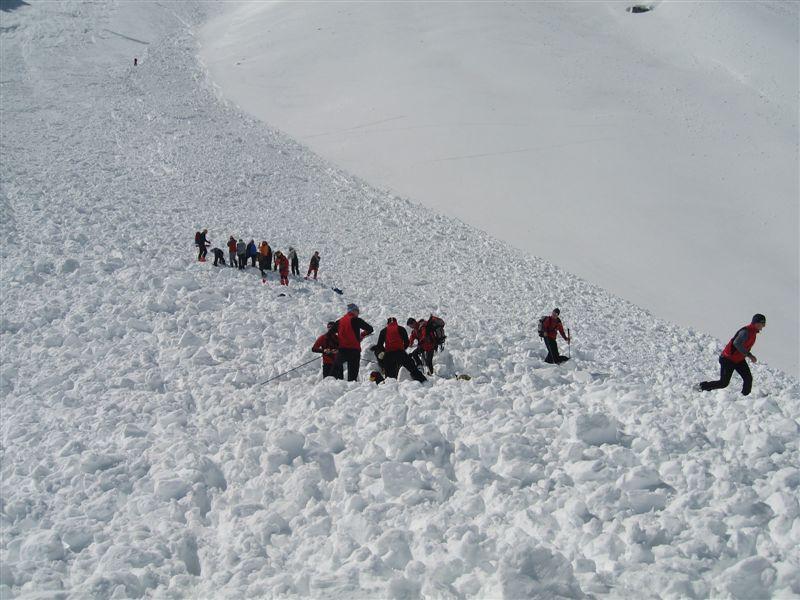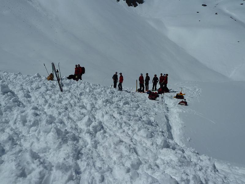 Lawinenunfall mit einer verschütteten Person. Leider war das LVS des Verunfallten nicht eingeschaltet, wodurch die Einsatzkräfte der Bergrettung mit Sondierketten arbeiten mussten.