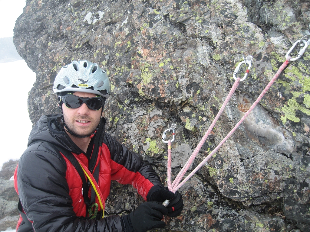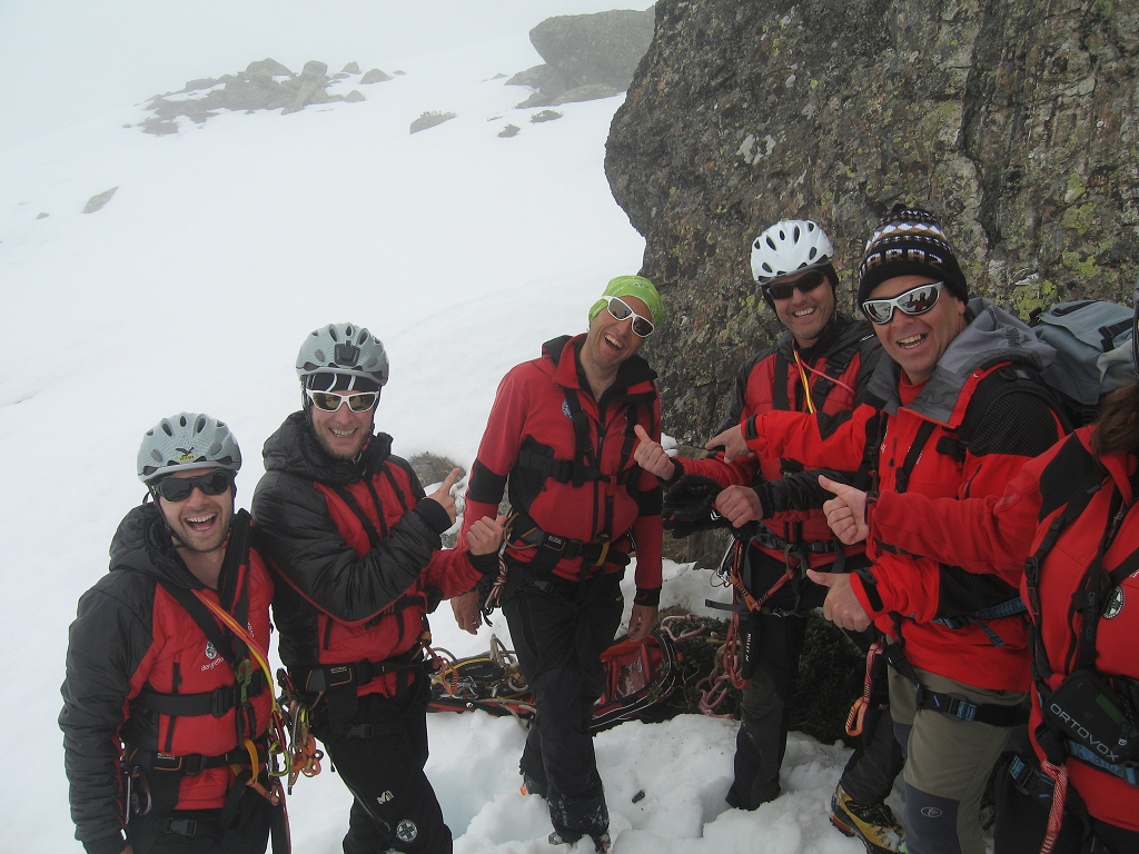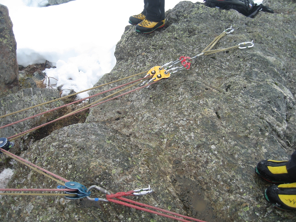 Am Schulungsprogramm standen Sicherungsarten im Fels und Eis, wobei sowohl die behelfsmäßige Sicherung und Bergung, als auch der organisierte Einsatz von Dyneema erklärt und intensiv geübt wurde.