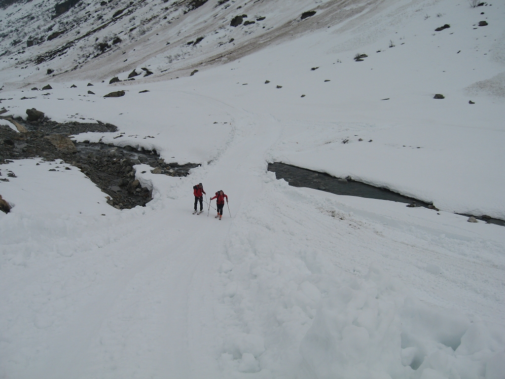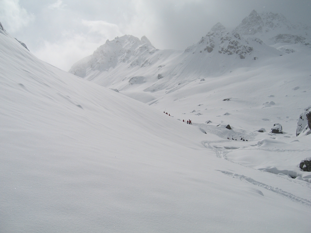 Trotz äußerst schlechter Wettervorhersage stiegen wir die 11 km von Galtür durch das Jamtal zum ABZ auf.