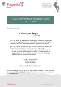 Vortrag „Abenteuer Berg“ von Heinz Zak in Axams am 1. Dezember 2018